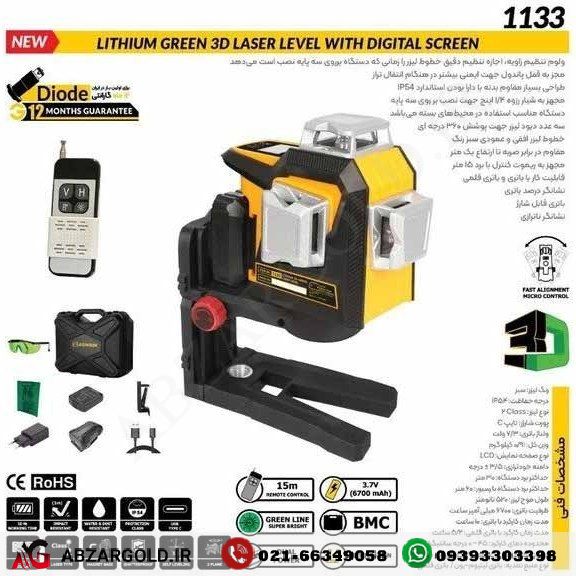 تراز لیزری 12 خط دیجیتال سبز رنگ کنزاکس مدل 1133