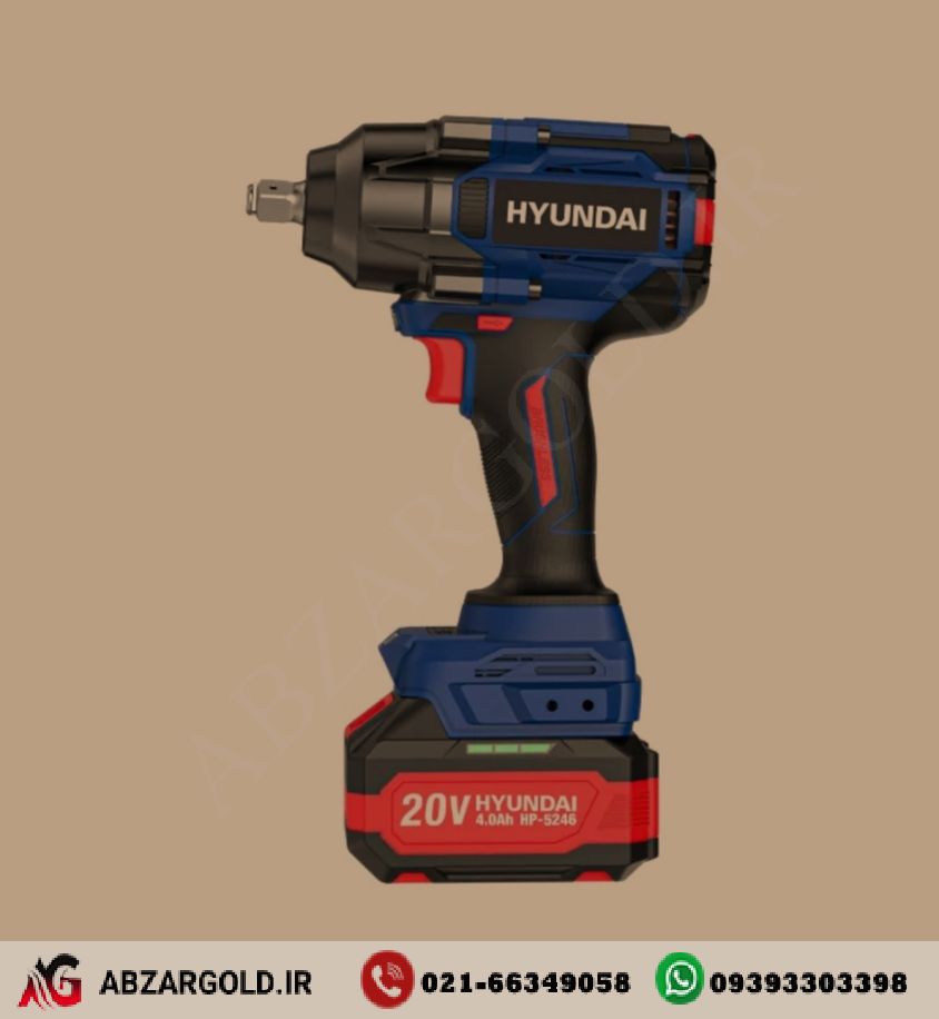 بکس شارژی براشلس 20 ولت 4 آمپر 800 نیوتن متر هیوندای مدل HP-5246 (دوباتری)
