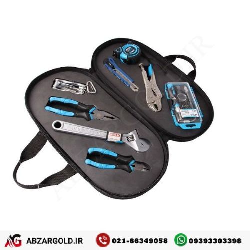 دارای ابزار های کاربردی از قبیل : متر 5.5 متری مارک اکتیو، آچار فرانسه 10 اینچ، انبر قفلی 7 اینچ، سیم چین 6 اینچ، انبردست 8 اینچ، کاتر 18 میلیمتر، آلن شش گوش 1.5، 2، 2.5، 3، 4، 5، 6و 8 و مجموعه دسته و سری پیچگوشتی های 32 پارچه ساعتی، دوسو، چهارسو، ستاره ای و آلنی