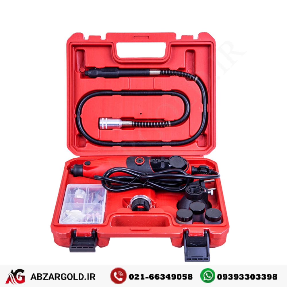 - دارای 181 پارچه همراه با: سنباده گرد قطر12.7, قطر6.3، صفحه نمدی 2 عدد قطر 21.5 و 2 عدد قطر 12,رابط میلهای قطر 6.3 و 12.7میلی متر، فرز HSS, آچار, برس فلزی، سنباده میلهای آلمینیوم اکسید, رابط میلهای صفحه نمدی, رابط میلهای صفحه برش، صفحه سنباده, صفحه برش فایبرگلاس, صفحه برش, صفحه برش فولادی, صفحه الماسه، کوپلینگ و شیلنگ رابط