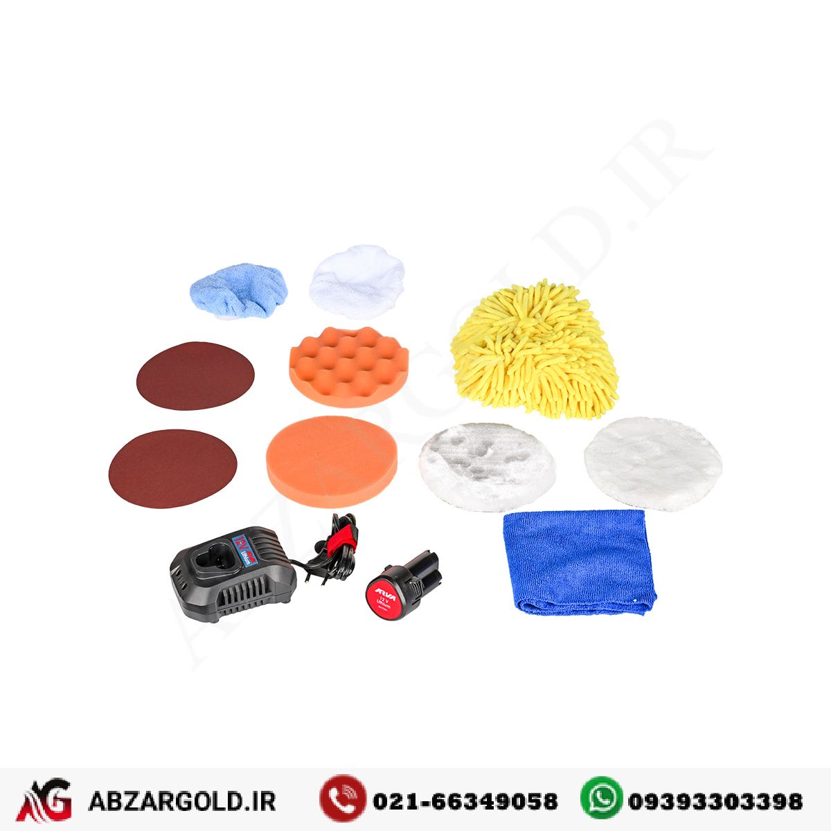 • متعلقات: ۲ عدد پد پشمی، ۱ عدد پد اسفنجی، ۲ عدد سنباده، ۲ عدد کاور، ۱ عدد پارچه تمیز کننده، ۱ عدد دستمال تمیز کننده ماکارونی، شارژر و ۲ عدد باتری ۱۲ ولت لیتیوم یونی